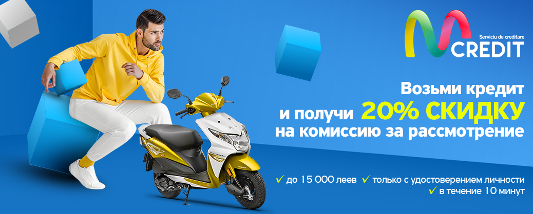MCredit - это инновационная услуга, уникальная на рынке телекоммуникаций в Молдове, которая позволяет вам получить кредит до 15 000 леев, только с помощью бюллетеня, на срок до 12 месяцев. Мы всегда рядом, когда вы нуждаетесь в нас, и помогаем вам быстро и легко решить любую финансовую проблему. И чтобы вам было приятно получить кредит, мы предоставляем 20% скидку на комиссию за рассмотрение кредитной заявки.