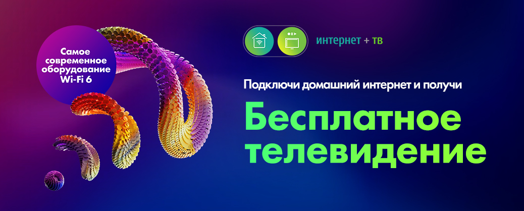 Бесплатному интерактивному телевидению на 24 месяца, чтобы ты и твоя семья могли наслаждаться богатой сеткой телеканалов, с любимыми фильмами и шоу, не выходя из собственного дома.