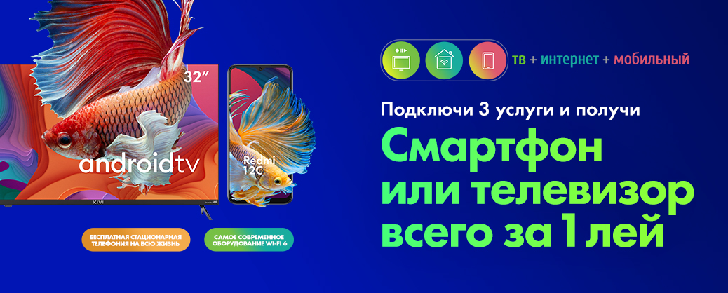 И поскольку больше услуг означает больше преимуществ, при подключении 3-х услуг Moldtelecom - домашнего Интернета, Телевидения и Мобильной Связи, ты получишь доступ к одному из двух мега-предложений: