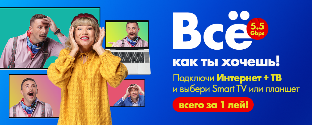 • Или возможность выбрать Smart TV до 55” или мощный планшет – всего за 1 лей!