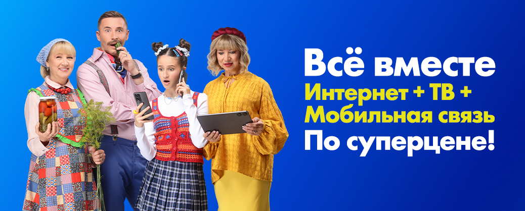 выбираешь все 3 услуги – Интернет, ТВ и Мобильную связь – получаешь ещё больше выгод: