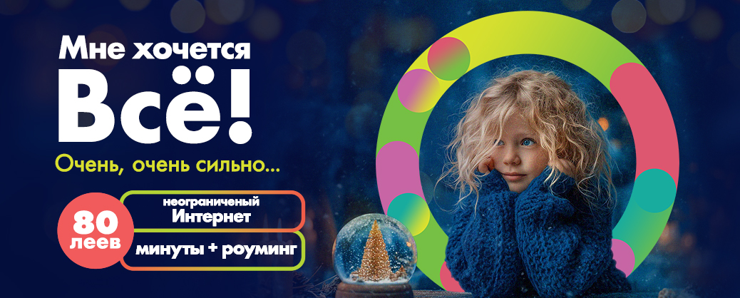 Магия праздников с Moldtelecom: безлимитный мобильный интернет, абонементы со сниженной ценой на 24 месяца, смартфон за 1 лей или voucher до 2000 леев. Предложения, созданные как для самых близких — от оператора молдаван.
