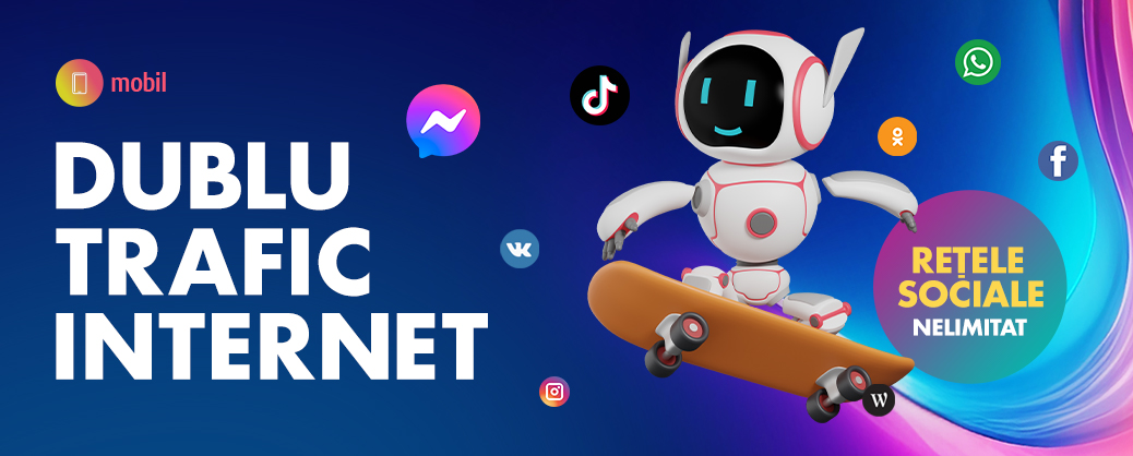 poți dubla traficul de internet la portarea numărului în rețeaua Moldtelecom! Fie că ești student, elev, părinte sau ai nevoie de mai mult net, pe durata a 24 de luni, navighezi fără limite și fără grija megabiților.
