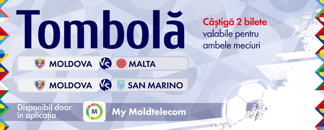Accesează zilnic aplicația MyMoldtelecom și obține șanse de participare la tombolă. Poți câștiga 2 bilete, pentru a trăi emoțiile disputei la cote maxime!