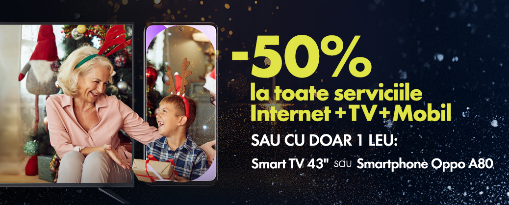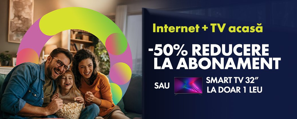 Smart TV la preț simbolic de doar 1 leu. În plus, reducerile continuă și în următoarele 12 luni, cu 25% la abonament.