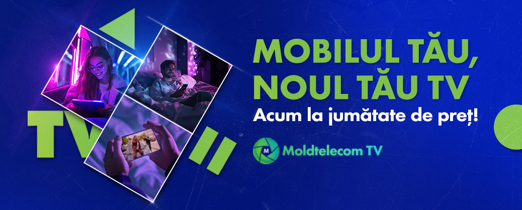Transformă-ți smartphone-ul în noul tău televizor și profită de oferta specială! Activează acum Moldtelecom TV la jumătate de preț și trăiește experiența unui divertisment de calitate, oriunde și oricând.