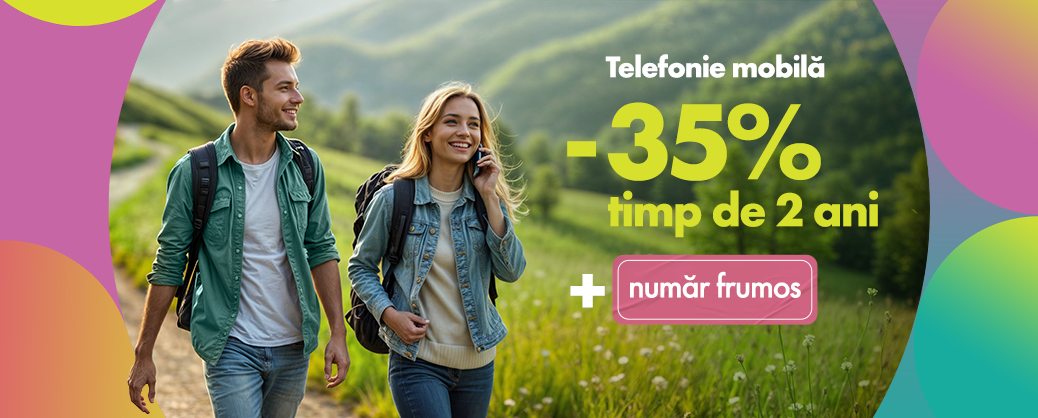 35% reducere la abonament timp de 2 ani! Indiferent dacă portezi numărul sau optezi pentru o conectare nouă, beneficiezi de o reducere garantată.