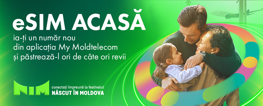 Cu eSIM Acasă, nu mai e nevoie să schimbi cartele fizice, să cauți chioșcuri, totul este la îndemână – simplu, flexibil, rapid. Activezi direct din aplicația My Moldtelecom, indiferent unde te afli: în aeroport sau în țara din care te pregătești să revii.