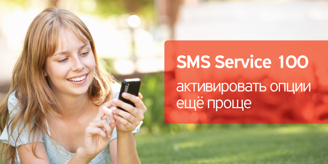 Используя SMS service, ты сможешь самостоятельно активировать или деактивировать дополнительные услуги. Чтобы воспользоваться данной услугой, достаточно отправить с твоего мобильного телефона SMS сообщение с кодами или ключевыми словами на короткий номер 100.