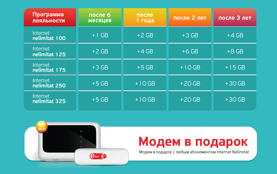 Теперь у тебя есть все, что нужно для прекрасного настроения: дополнительный Интернет-траффик в абонементе, до 120 GB бонус за нахождение в сети и бесплатный 4G модем при подключении.