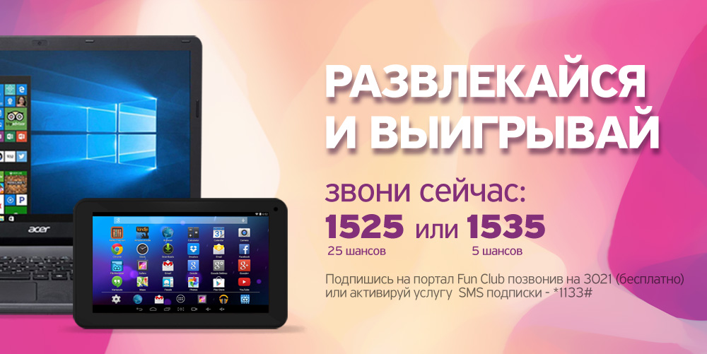 Подписка на услуги 3021 Fun Club или SMS-подписка по короткому номеру *1133# равна 1 шансу на выигрыш. Чем больше дней подписки – тем больше шансов выиграть приз.