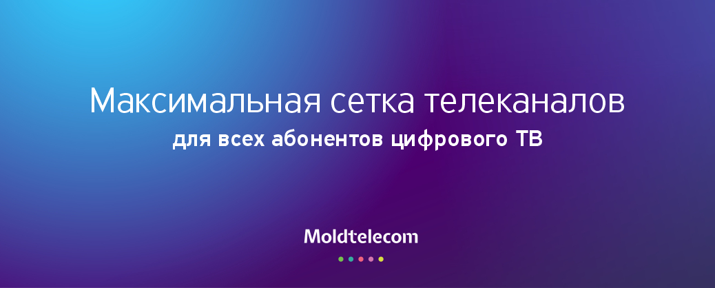 Мы хотим, чтобы время, проводимое вами дома, было как можно более интересным и полезным. Поэтому Moldtelecom предоставил всем абонентам цифрового телевидения доступ до 30 апреля текущего года к максимальной сетке телеканалов. Это 167 каналов, из которых 58 транслируются в формате HD, с разным контентом, на вкус каждого члена семьи.