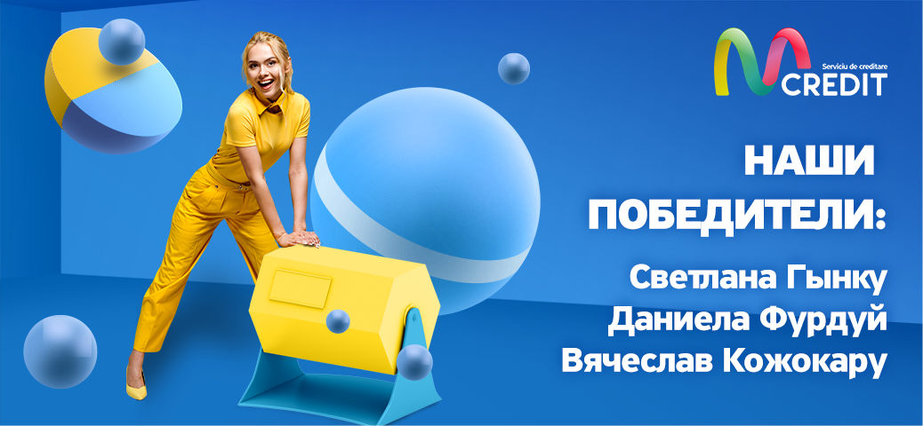 Приносим свои искренние поздравления с наилучшими пожеланиями: Светлане Гынку, Даниеле Фурдуй и Вячеславу Кожокару, которые выиграли в розыгрыше – отмену годового процента, отмену платы за рассмотрение заявки а так же отмену административного сбора.