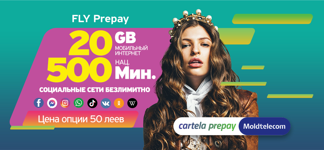 «Fly Prepay» с 1 февраля 2021 года и наслаждайся лучшим предложением, которое дает намного больше национальных минут и намного больше интернета! Активируй опцию и получи 500 национальных минут и 20 GB интернет- трафика, чтобы иметь возможность как можно больше общаться с твоими близкими.