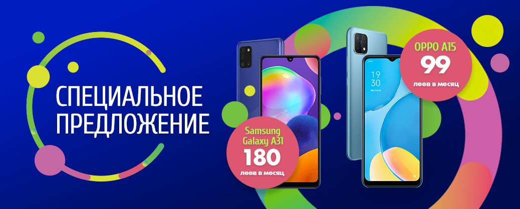 Samsung Galaxy A31 и Oppo A15, уже доступны и в магазинах Moldtelecom. Не упусти свой шанс насладится этим супер предложением. Купи телефон Samsung Galaxy A31 с 128 GB за 180 леев в месяц. А всего за 99 леев в месяц, ты можешь получить OPPO A15 с памятью 32GB и
