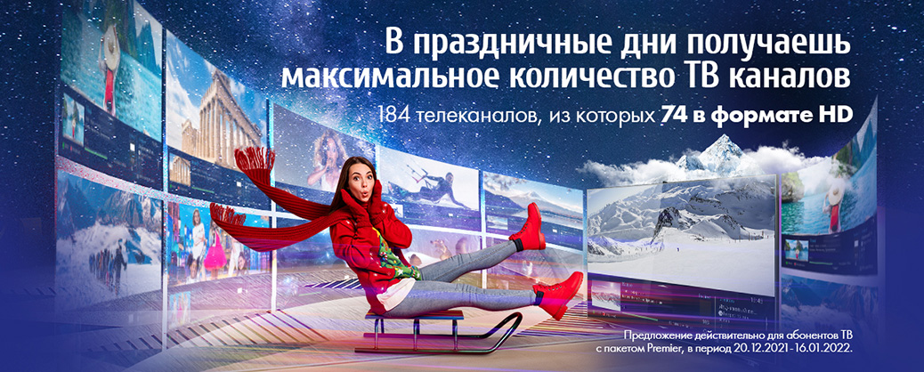 20.12.2021 по 16.01.2022 мы предлагаем тебе в подарок пакет с максимальным количеством каналов!