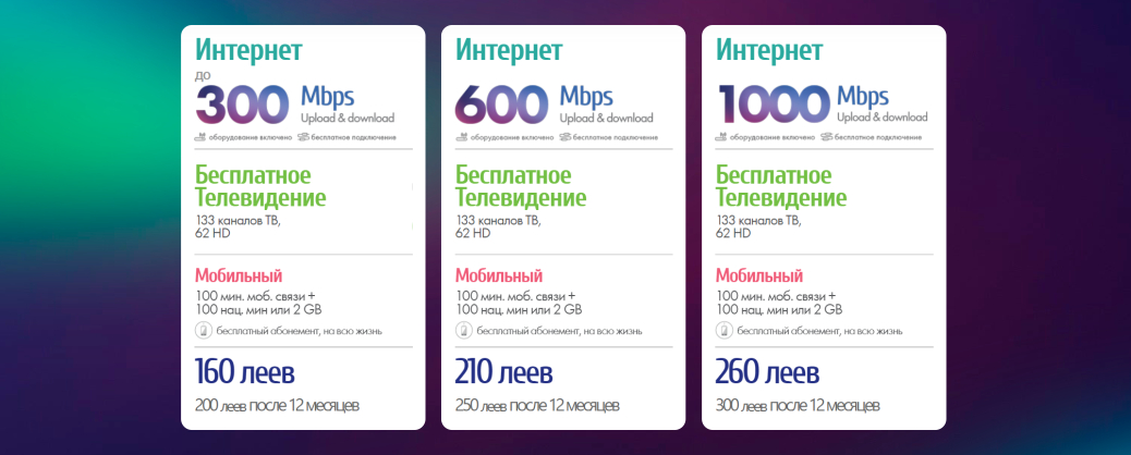 Теперь ты можешь наслаждаться скоростью от 300 до 1000 Мбит/с и интерактивным телевидением до 200 телеканалов, из них 82 в формате HD, дополнительно получаешь бесплатный мобильный абонемент на всю жизнь, cо 100 минутами в мобильной сети + 100 национальных минут или 2 Гб.