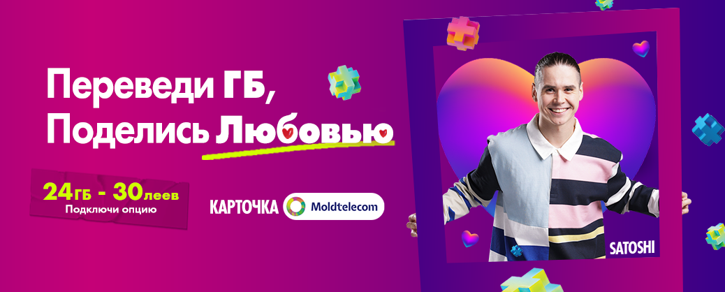 Новая опция делает общение между абонентами доступным и простым. Обнови приложение My Moldtelecom и делись гигабайтами и любовью.