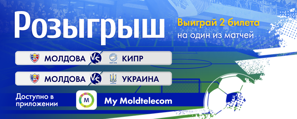 Moldtelecom, генеральный партнер Молдавской Федерации Футбола, приглашает тебя стать болельщиком и испытать азарт матчей, прямо с трибун! Таким образом, у тебя есть уникальная возможность присутствовать на товарищеских матчах Молдова - Кипр (8 июня) и Молдова - Украина (11 июня), которые пройдут на стадионе «Зимбру» в Кишиневе, начиная с 19:00.