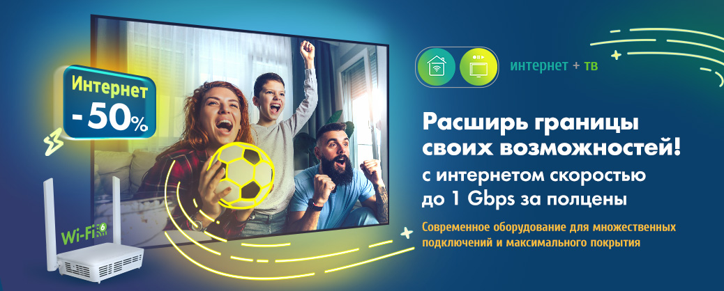 50% скидку - дополнив это ТВ-абонементом. Таким образом, ты получаешь все услуги от одного оператора с премиум качеством и значительной экономией.
