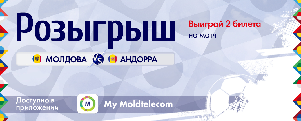 Наслаждайся футбольным азартом в полную силу и выиграй билеты на матч Молдова - Андорра! С Moldtelecom у тебя есть шанс оказаться в центре событий на стадионе «Зимбру»