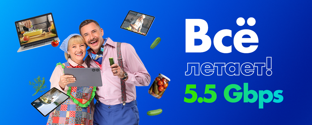 Выбирай пакеты 2.1 Гбит/с или 5.5 Гбит/с + ТВ и получай любимую консоль по символической цене – для гейминга без лагов и опыта нового поколения.